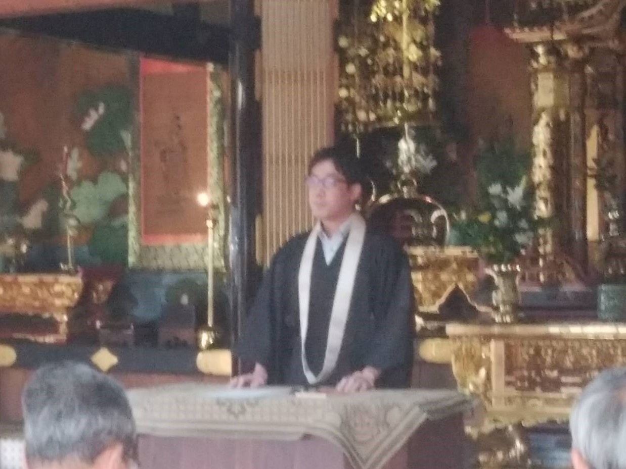 4日(日)の2日目は、西阿閉の恩覚寺で開催され、講演は西柳野圓行寺若院禿恵至氏が「遠く宿縁を慶べ」を講題としてお話されました。教行信証の総序文に出てくる宗祖のお言葉をいただかれ、自分自身の今あることの有難さと尊さを自らの歩みを通してお話し下さいました。